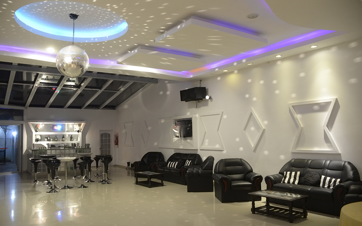 Ambientación lounge en blanco y negro de 170 m2, decorado en yeso